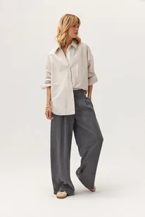 Koszula Albi z bawełnianej popeliny to połączenie swobody i nowoczesnego stylu. Luźniejszy krój zapewnia komfort, a kontrastowe akcenty i praktyczna kieszeń dodają całości charakteru. To model inspirowany miejską elegancją – świetnie prezentuje się zarówno samodzielnie, jak i w warstwowych stylizacjach, zawsze nadając lekkości i świeżości Twojemu lookowi. Swobodny, lekko luźny fason