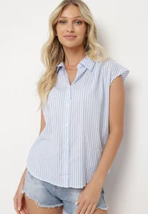 Niebieska Bawełniana Koszula Bez Rękawów w Paski Zapinana na Guziki Loratia