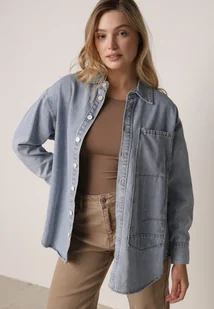 Niebieska Koszula Jeansowa z Bawełną Ozdobiona Przeszyciami Junie