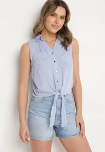 Niebieska Koszula Top z Wiązaniem na Dole z Wiskozy Neviose