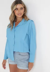 Niebieska Koszula z Falbaną przy Ramionach i Kołnierzem Sarya