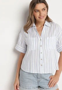 Niebieska Koszula z Lnu i Wiskozy o Kroju Oversize Restia