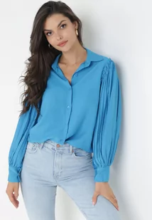 Niebieska Koszula z Plisowanymi Rękawami Leophone