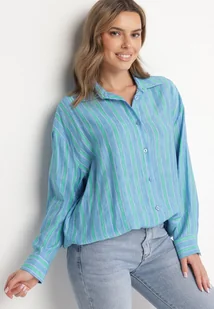 Niebieska Koszula z Wiskozą Ozdobiona Paskami Liavona