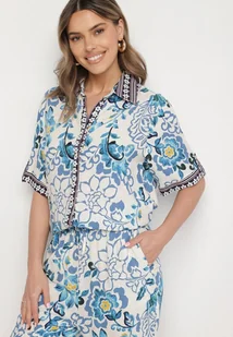 Niebieska Koszula z Wiskozy w Kwiatowy Wzór Milineira