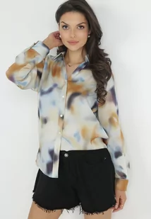 Niebiesko-Brązowa Koszula z Kołnierzykiem z Wzorzystej Tkaniny Lumi