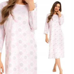 Śliczna i bardzo wygodna koszula damska polskiego producenta, marki Regina. Wykonana ze 100% bawełny, zapewnia komfort w trakcie snu i sprawia, że skóra swobodnie oddycha. Koszula ma rękawy 3/4, długość sięgającą kolan i dekolt okrągły. Uszyta została z jasnego materiału, w śliczne, delikatne różowe druki. Bardzo kobieca i subtelna.