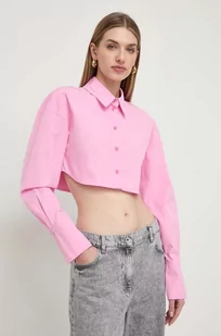 Patrizia Pepe koszula bawełniana damska kolor różowy regular z kołnierzykiem klasycznym
