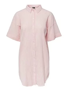 PIECES Damska koszula z krótkim rękawem Longline, Begonia Pink/Stripes:Cloud Dancer, S