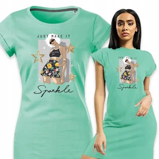 PIŻAMA DAMSKA MIĘTOWA Koszula Nocna Na Prezent MAKE IT SPARKLE Wzory - M
