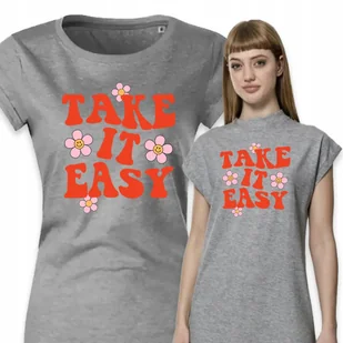 PIŻAMA DAMSKA SZARA Koszula Nocna Na Prezent TAKE IT EASY Motywacyjne Wz M