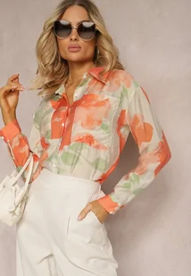 Pomarańczowo-Beżowa Koszula o Luźnym Kroju Zapinana na Guziki Piasha