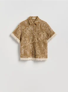 Reserved - Koszula ze strukturalnej dzianiny - beżowy