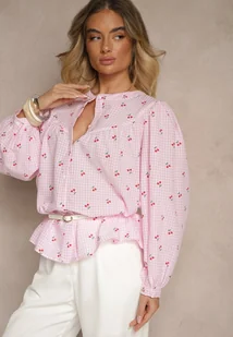 Różowa Koszula z Bawełny w Kratkę z Wisienkami Halonira