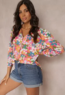 Różowo-Pomarańczowa Kwiecista Koszula z Ozdobnymi Guzikami i Trójkątnym Dekoltem Portlyn