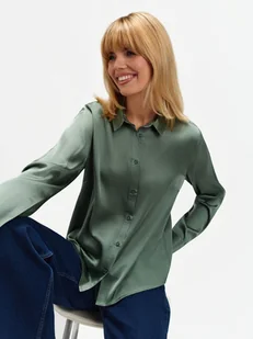 Ta elegancka koszula w odcieniu oliwkowej zieleni to idealny wybór dla kobiety ceniącej styl i wygodę. Uniwersalny fason sprawdzi się zarówno w formalnych, jak i codziennych stylizacjach.