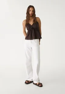 Stradivarius Top na ramiączkach z wiązaniem Brązowy XXS