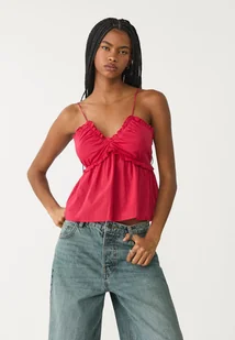 Stradivarius Top na ramiączkach z wiązaniem Ciemnoczerwony XXS