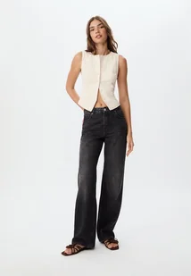 Top wykonany z tkaniny z mieszanki wiskozy. Okrągły dekolt i rękaw bez ramion. Dół wykończony rozcięciem z przodu. Detal tkaniny o pogniecionej teksturze. Zapięcie z przodu na guziki w tym samym odcieniu.