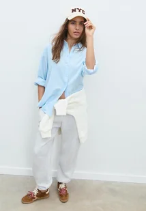 Stradivarius Zwiewna koszula z efektem lnu Niebieski denim XXS