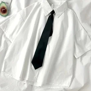 TEMU 1 szt. Damska Letnia Koszulka z Krótkim Rękawem - Koreański Styl, Luźny Fason z Opadającymi Ramionami i Klasycznym Kołnierzem, Jednokolorowa