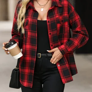 TEMU Damska Casual Luźna Elegancka Koszula w Kratę z Długim Rękawem LL425