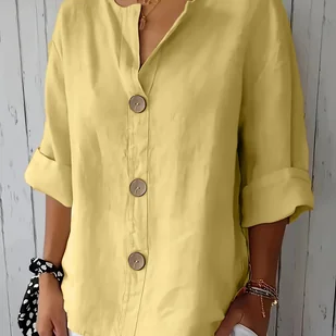 TEMU Bluzka Damska na Co Dzień z Dekoracyjnymi Guzikami - Beżowa, Krótki Rękaw, Okrągły Dekolt, Idealna na Wakacje i Codzienne Noszenie, Odzież