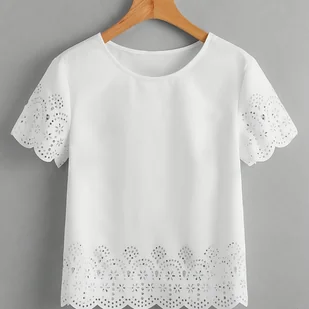 TEMU Bluzka Damska z Asymetrycznym Dołem - Elegancka Koszulka z Okrągłym Dekoltem i Krótkim Rękawem, Jednokolorowa, Lekka do Prania w Praniu