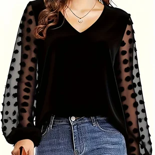 TEMU Bluzka Damska z Eleganckim Dekoltem w Serek - Jednokolorowa Czarna z Kwiatowym Aplikacją, Luźny Krój na Pracę i Wakacje, Wszechsezonowa Koszula,