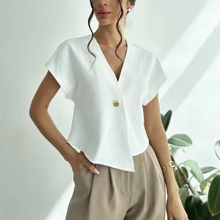 TEMU Bluzka z Dekoltem w Serek na Guziki o Bliskowschodnim Stylu dla Kobiet – Lekka, Pranie Maszynowe, Jednokolorowa Koszula na Letnie Dojazdy,