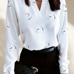 TEMU Damska Elegancka Koszula z Nadrukiem Miłości, Długi Rękaw i Dekolt w Serek, Bez Guzików, Lekki Materiał, Odpowiednia na Codzienny Wyjazd Latem,
