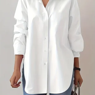 TEMU Damska Koszula z Kołnierzykiem - Jednokolorowa Bluzka z Długim Rękawem na Wiosnę/Jesień, Do Biura i Stylu Casual - Koszula na Guziki (Bez