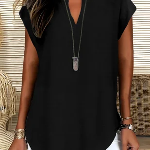 TEMU Damska, luźna, jednokolorowa koszulka z dekoltem w kształcie litery V, swobodna i stylowa, z krótkim rękawem, na .