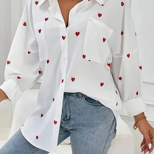 TEMU Damska Swobodna Koszula z Długim Rękawem i Kieszenią w Serduszka