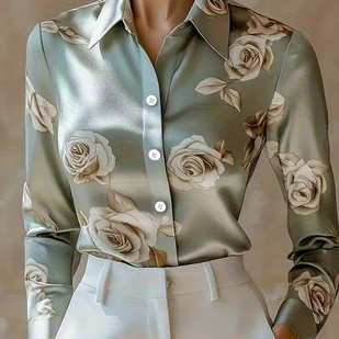 TEMU Elegancka Satynowa Koszula Damska na Jesień-Zimę