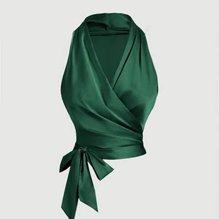 TEMU Elegancka bluzka damska z wycięciem na ramieniu i kokardką - stylowa jednokolorowa, bez rękawów, z dekoltem w kształcie litery V, na