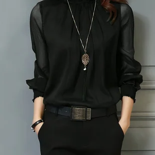 TEMU Elegancka bluzka damska z wysokim dekoltem i długim rękawem - transparentna koszula w jednolitym kolorze z falbankami na rękawach, materiał