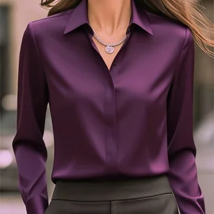 TEMU 25 Jesień Głęboki Fiolet Damska Elegancka Koszula z Długim Rękawem Niannian
