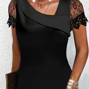 TEMU Modna damska koszula z koronkowymi naszywkami i jednolitym kolorze, zaprojektowana, aby przyciągać bogactwo.