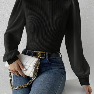 TEMU Elegancka, jednokolorowa bluzka z pufiowymi rękawami i wysokim dekoltem dla kobiet