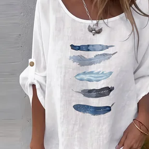 TEMU Elegancka koszula damska - gładka, z okrągłym dekoltem, casualowa bluzka modowa z kolorowymi nadrukami i detalami z guzikami, o luźnym kroju,
