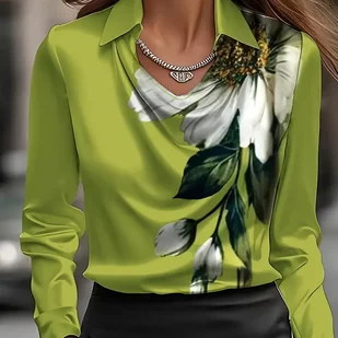 TEMU Elegancka Koszula z Długim Rękawem i Kołnierzykiem w Nadruk