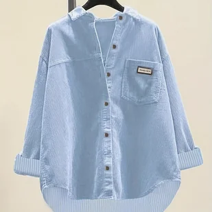 TEMU Elegancka Kurtka-Koszula z Długim Rękawem i Guzikami - Jednokolorowa Bluzka z Guzikami, Pranie w Praniu Maszynowym, Profesjonalny Strój na Cały