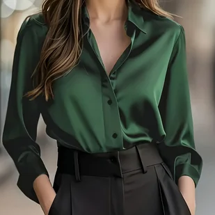 TEMU Elegancka Zielona Jednokolorowa Marynarka w Stylu Koszuli dla Kobiet – Strukturalny Kołnierz na Każdą Porę Roku, Pranie w Praniu Maszynowym,