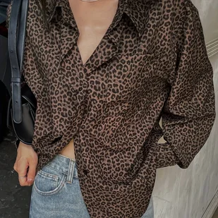 TEMU Kobieca Elegancka Bluzka w Lamparcie Wzory - Luźny Krój z Długim Rękawem i Spiczastym Kołnierzykiem, Pranie Maszynowe & Czyszczenie Chemiczne,