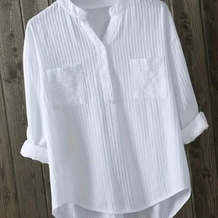 TEMU Elegancka Koszula z Kołnierzykiem dla Kobiet – Jednokolorowa Bluzka z Długim Rękawem, Idealna na Styl Casual lub Formalny, Do Biura, na Wesele