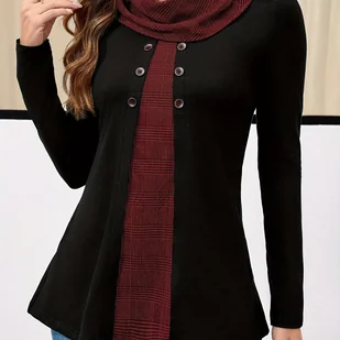 TEMU Elegancka Kierunek + Damska Modowa Koszula z Długim Rękawem w Bloki Kolorów