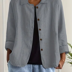 TEMU Modna Damska Koszula w Jednolitym Kolorze z Długim Rękawem Zapinana na Guziki