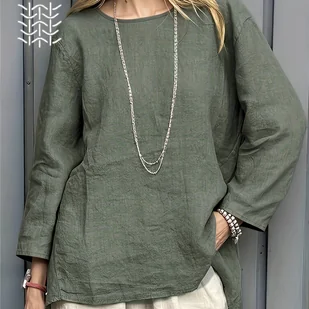 TEMU lniana bluzka damska w stylu leśnym, idealna na wiosnę, jesień i zimę. Luźna, podkreślająca sylwetkę, codzienna, uniwersalna koszulka z długim
