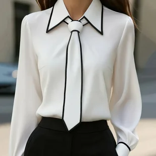 TEMU Modna, elegancka damska koszula z kołnierzykiem, w b kolorów, z długim rękawem i muchą, idealna do noszenia na co dzień, do biura i na formalne